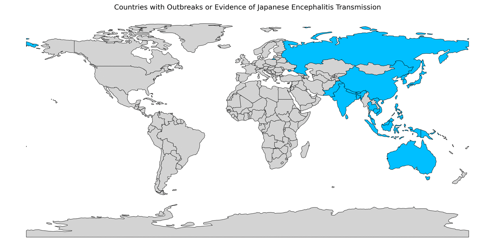 Japanese Encephalitis is a viral infection transmitted by mosquitoes, causing brain inflammation. Symptoms include fever, headache, and seizures. Affected countries include India, China, and Thailand.